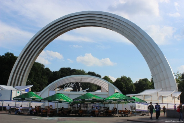 Біля арки Дружби народів – Європейське містечко. Тут усі охочі також спостерігають за матчами.