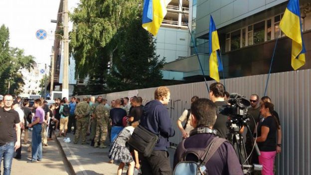 Акція, на яку закликали прийти відучора в соціальних мережах,розпочалася навіть раніше заявленого. Активісти зібралися за годину до оголошеного старту. За приблизними підрахунками, їх трошки більше сотні. Журналістам вони представилися громадськими організаціями, студентськими об'єднаннями і ветеранами АТО.
