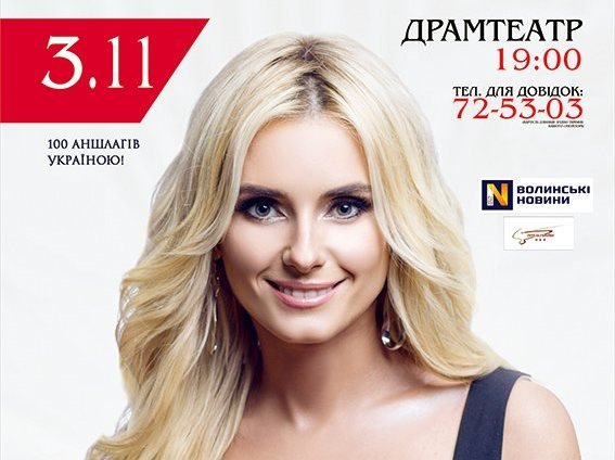 Усіх шанувальників її творчості запрошують 3 листопада о 19:00 до Волинського облмуздрамтеатру імені Т.Г. Шевченка.