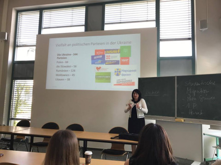 «Аудиторія слухачів складалась переважно із людей, які дуже мало знають про Україну. Це були студенти спеціальностей «політологія», «соціологія», «культурологія» та «історія». Моїм завданням було донести через практичну складову суть української політики. Куратор тематики «Політика» професор Пітер Нічке перед моєю лекцією представив нашу державу, як країну Центральної Європи. Це надзвичайно важливо, що там нас сприймають не як державу десь на периферії, а як важливий субєкт європейської співдружності», – розповідає Ірина Мирославівна.