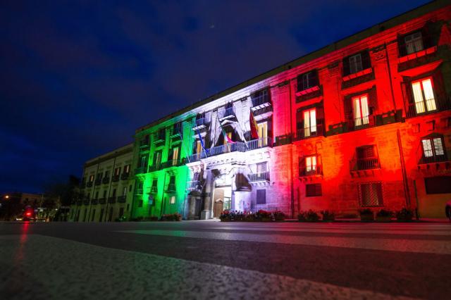Щоправда, на вулицях Італії поки досить порожньо. Ця країна стала першою у Європі, де зафіксували потужний спалах COVID-19. Там захворіли понад 180 тисяч людей і понад 24 тисячі померли від ускладнень, спричинених COVID-19.Адміністративна будівля у Сицилії підсвічена кольорами італійського трикольору