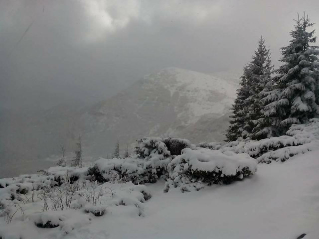 У високогір'ї Карпат випало вже 15 сантиметрів снігу, а через заметіль нічого не було видно вже на відстані 30 метрів.