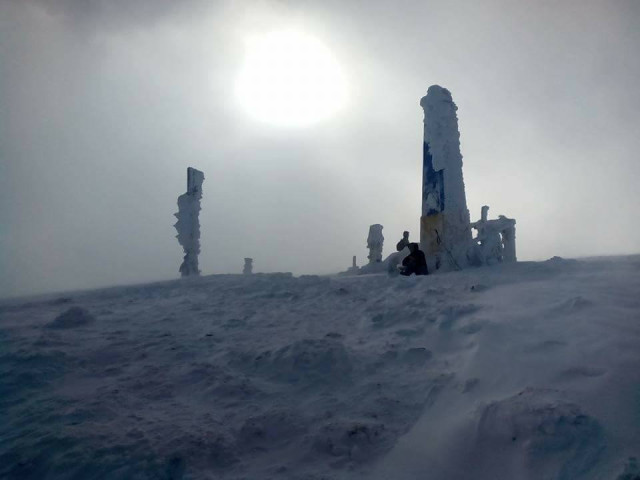 Відео хуртовини, що ледь не зносить з ніг на горі Піп Іван, де розташована метеостанція, виклали в мережу користувачі. Сніг не тане, бо температура в горах опустилася до мінус шести.
