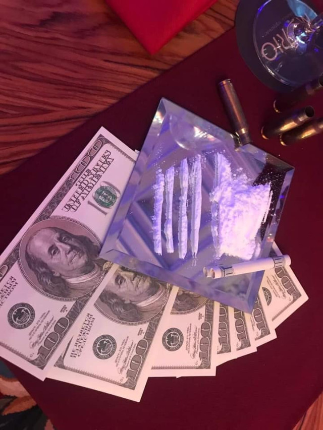 Долари не справжні, придивіться, і кокс теж, це муляж, у них тематика свята Police.