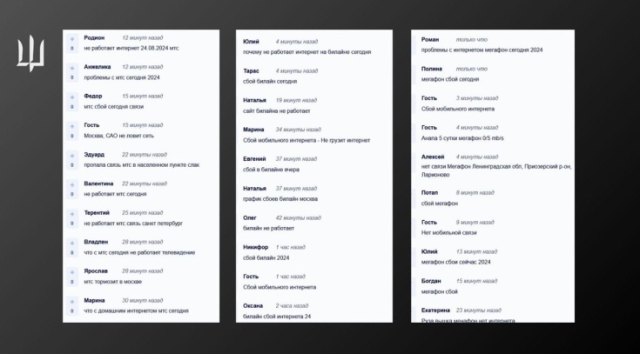 Росіяни масово скаржаться на збої роботи провайдера цифрових послуг «Ростелеком» і мобільних операторів MTC та «Білайн». Також під атакою сервіси «Яндекс». Усі атаковані російські ресурси підтримують і фінансують війну проти України.Читати ще: Хакери ГУР паралізували роботу розробника ядерних боєприпасів у РФ