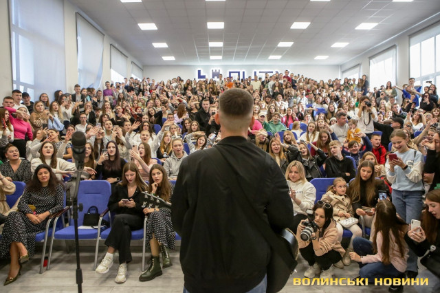 «Ходив з гітарою по Луцьку, а мені давали 5 гривень». YAKTAK розповів луцьким студентам про перший кліп, псевдонім та Євробачення. Фото