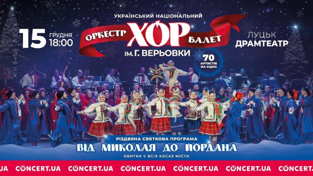 Світ захоплюється їхнім мистецтвом, аплодуючи стоячи! Легендарний хор імені Григорія Верьовки, відомий на найвищих світових сценах, презентує святкову програму «Від Миколая до Йордана» у Луцьку.