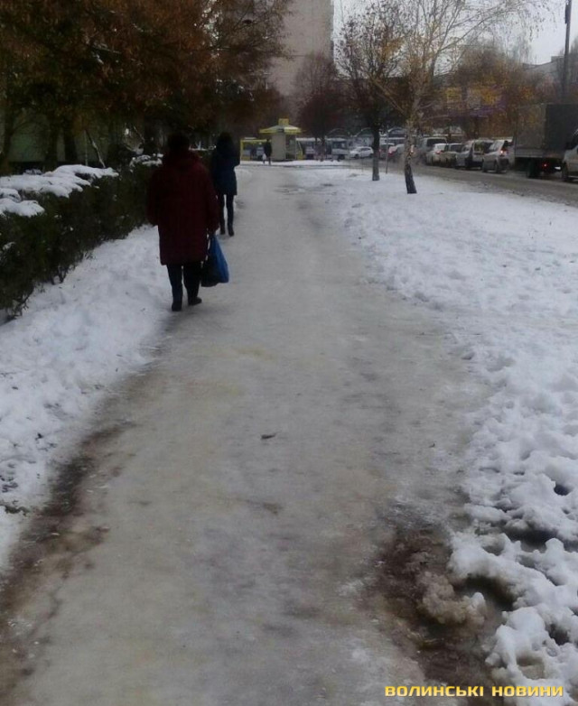 Лише минулої доби 13 лучан отримали переломи на вулицях міста. Загалом за останні три дні більше 30 городян звернулися до травмпункту. З усіх куточків міста надходять скарги на недостатню роботу комунальних служб, особливо щодо чищення тротуарів та на непосипання пішохідних доріжок.