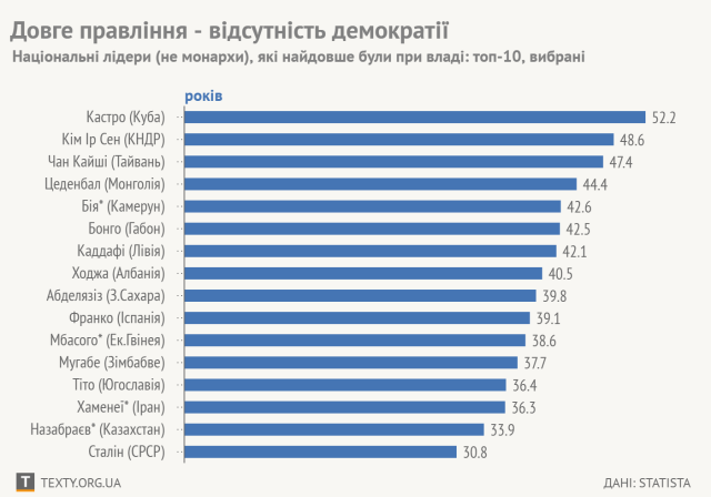 Хто у XX столітті найдовше перебував при владі. Інфографіка