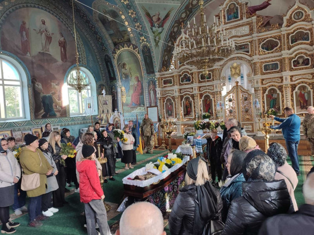 Попрощатися із загиблим прийшли рідні, близькі, друзі, військовослужбовці, представники влади, духовенство та мешканці громади.