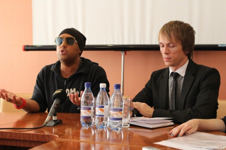 До слова, присутність зірки на прес-конференції до конкурсу краси перетворила її на подобу особистої конференції Дмитра, присвячену його приїзду.