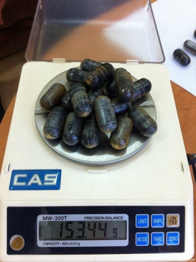 Наркотик був розфасований в 34 капсули, які зловмисник напередодні проковтнув. Під час проведення особистого митного огляду у медичній установі, вказані капсули були виявлені в результаті рентгенографії.