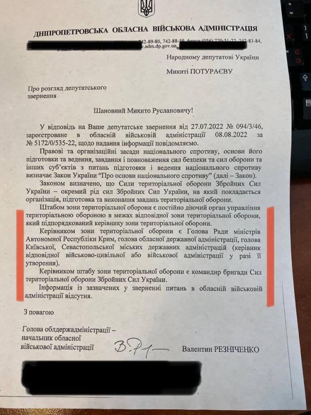 Про це йдеться в офіційних відповідях згаданих відомств на депутатське звернення народного депутата Микити Потураєва. Копії документів опублікував у мережі активіст, голова громадської організації «Антикорупційна платформа «Дніпро без корупції» Денис Розов, передає УНІАН.