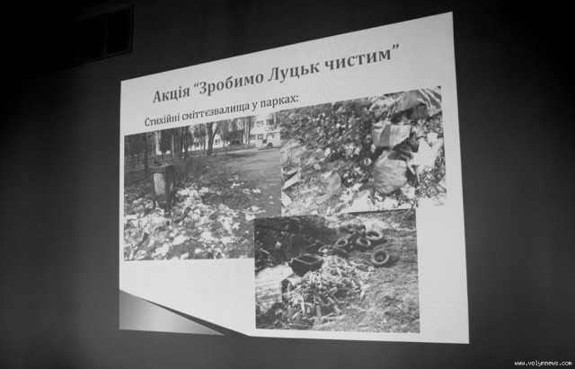 У рамках акції «Зробимо Луцьк чистим» спільними зусиллями лучани прибрали 13 зелених зон міста, зібравши 495 пакетів звичайного сміття, 243 пакети ПЕТ-пляшок та 249 пакетів скла, - повідомили під час круглого столу. Присутнім продемонстрували фото стихійних сміттєзвалищ у парках міста. Зокрема, досі занепокоєння викликає зелена зона поблизу університету «Україна», звідки мішки із зібраним сміттям досі не вивезли. Відповідальним за цей інцидент називають департамент ЖКГ.
