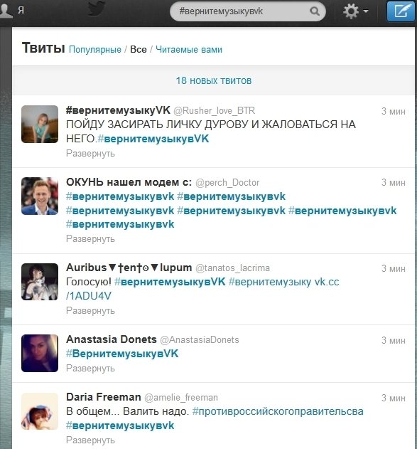 У соцмережі Twitter буквально почалася революція через це. Хештег #вернитемузикувvk вийшов майже на перше місце.