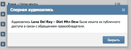 Так, при спробі прослухати деякі аудіозаписи спливає вікно з повідомленням: «Аудіозапис [...] було вилучено з публічного доступу в зв'язку зі зверненням правовласника».