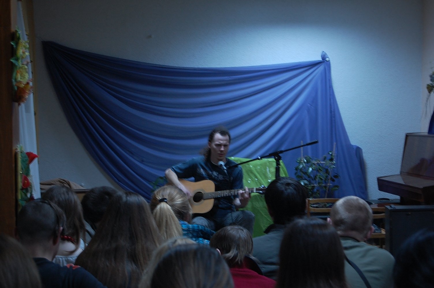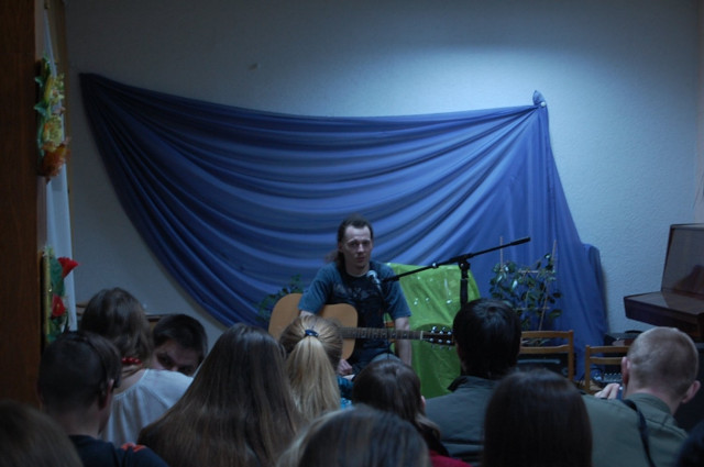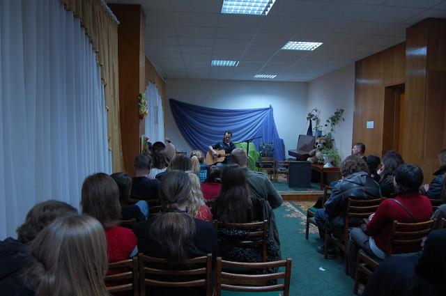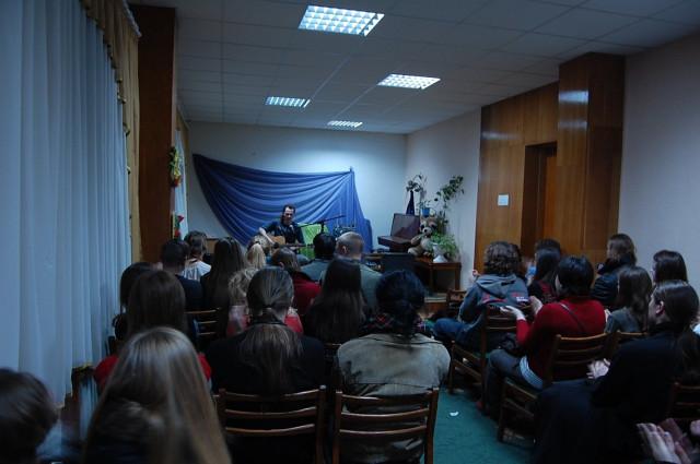 Невеличка зала у луцькому Будинку вчителя була повністю заповнена приблизно півсотнею молодих волинян. Сергій Василюк, акомпануючи на гітарі, виконував авторські пісні, переважна частина з яких є маловідомою для широкого загалу. У піснях пана Василюка – глибокі почуття, краса української природи, зокрема в образах вітру, сонця, води, вогню. Виконані твори переповнені лірикою. Вони стосувалися і життя України та українців, а також української діаспори. Одна з пісень була створена на слова видатного поета Василя Стуса. Сильний голос, сильні тексти пісень, їхнє виконання «від душі» – все це, безперечно, сподобалось публіці, яка після кожного виступу аплодувала співаку.