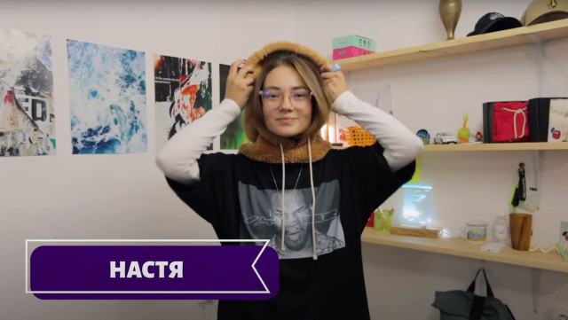 Насамкінець програми Настя продемонструвала свої капюшони.«Я придумала собі таке хобі. Я катаюся на сноуборді, і в мене була потреба в балаклаві, але не такій скучній, як звичайна. Тому я придумала робити отакі м’які, дуже приємні капюшони, які налазять на шолом. Можна вдягнути й під шолом, щоб було зручніше. Я зробила першу одиницю собі в рудому кольорі. І подумала: а чому б людям таке не запропонувати? – розповіла дівчина. – Люди почали брати їх собі до якого одягу без капюшонів. Це суперкласно».