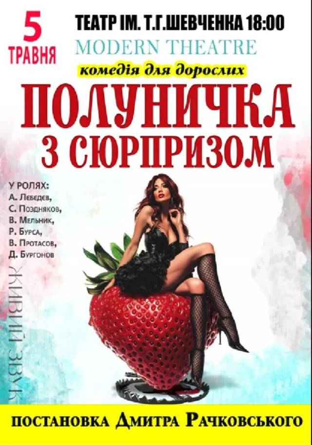 Вистава «Покоління Пепсі» в експериментальному театрі «Адреналін» | 1 травняКонцерт у музичній школі №1 | 1 травняВідкриття виставки Василя Дмитрика в Музеї Корсаків | 2 травняТворчий звіт у музичній школі №3 | 2 травняАбсурдна трагікомедія «Кароль» у драмтеатрі | 2, 3 травняЛуцький ярмарок ветеранського бізнесу «Я зміг – і ти зможеш!» на Театральному майдані | 3 травняВистава «Обережно, незнайомець» у театрі ляльок | 3 травняCHEEV у РЦ «Промінь» | 3 травняЛітературний вечір з Юрієм Іздриком у Палаці культури | 3 травня«Мертвий півень» у пабі «Карабас Барабас» | 3 травняЯрослав Ліндер презентує науково-фантастичний роман «Іска» в книгарні «Є» | 3 травняСтендап у Палаці культури | 4 травняКомедійна оперета «Сільва» у драмтеатрі | 4 травняВистава «Пан Коцький» у театрі ляльок | 4 травня«Дорослі дівчата» у РЦ «Промінь» | 4 травняМюзикл «Рукавичка» у драмтеатрі | 4 травняКомедія для дорослих «Полуничка з сюрпризом» у драмтеатрі | 5 травняМузичний захід «ЦЕ МОЯ УКРАЇНА! ПІСНІ ВАСИЛЯ ЗІНКЕВИЧА» в бібліотеці для юнацтва | 5 травняДрама-інтерв’ю «Долі жіночі, або Послання від заробітчанок» у драмтеатрі | 6 травняПоетичні читання в межах проєкту «Теплий вечір з військовим» в просторі «Культурне укриття» | 6 травняВиставка-концерт «Червоне Чорне» у бібліотеці для юнацтва | 6 травня«Місто всупереч» у рамках Urban Talks 2.0. на історичному факультеті | 7 травняЗустріч від PRO WOMEN UA. Реєстрація тут | 7 травняКонцерт «Магія струн» у музичній школі №1 | 7 травняКомедійний трилер з елементами мелодрами «Мільйон парашутиків» у драмтеатрі | 8 травняКонцерт «Так звучать Луцьк і Київ разом» у костелі Св. Апостолів Петра і Павла | 9 травня