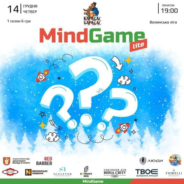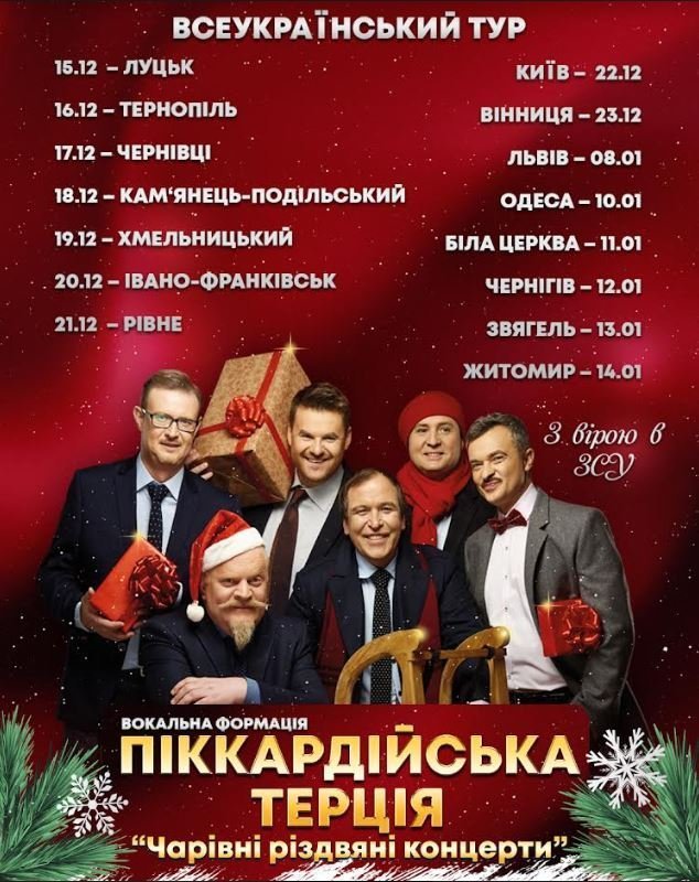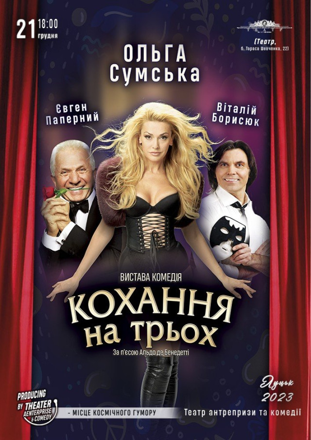 Mind Game у бункері-броварні «Карабас-Барабас» | 14 грудняЄвген Кот із програмою «Танцюй зі мною, Україно» у Волинському академічному театрі імені Тараса Шевченка | 14 грудняДрама-комедія «Академія сміху» у Волинському академічному театрі імені Тараса Шевченка | 14 грудня«Піккардійська Терція» у Волинському академічному театрі імені Тараса Шевченка | 15 грудняДрама «Не шукайте щастя, бо я його вкрав» у Волинському академічному театрі імені Тараса Шевченка | 15 грудняПрезентація детективів з львівською душею Ольги Ваккаус у книгарні «Є» | 16 грудняТворча зустріч із військовослужбовцем та письменником Андрієм Кириченком «Мисливці за градами» у конференц-залі Музейного простору «Окольний замок» | 16 грудняВистава «Велика мрія маленької ялинки» у Волинському театрі ляльок | 16 грудняРіздвяно-новорічна казка в «Рестпарку» | 16 грудня«Різдвяні пригоди Грінча» в Палаці культури міста Луцька | 16, 17 грудняВистава «Сонечко і снігові чоловічки» у Волинському театрі ляльок | 17 грудняКомедія «Різанина» в експериментальному театрі «Адреналін» | 17 грудня«Шахрайки» у Волинському академічному театрі імені Тараса Шевченка | 17 грудняENLEO у Gosti grill&forest | 17 грудняМюзикл для дітей «Попелюшка» у Волинському академічному театрі імені Тараса Шевченка | 17 грудняFrank Sinatra tribute у Волинському академічному театрі імені Тараса Шевченка | 18 грудняThe Harry Potter symphony в РЦ «Промінь» | 20 грудняВистава «Кохання на трьох» у Волинському академічному театрі імені Тараса Шевченка | 21 грудня«На полі крові» у Волинському академічному театрі імені Тараса Шевченка | 21 грудняЛекція від Михайла Зданевича у центрі Дія.Бізнес | 22 грудняPianoбой у Gosti grill&forest | 22 грудня
