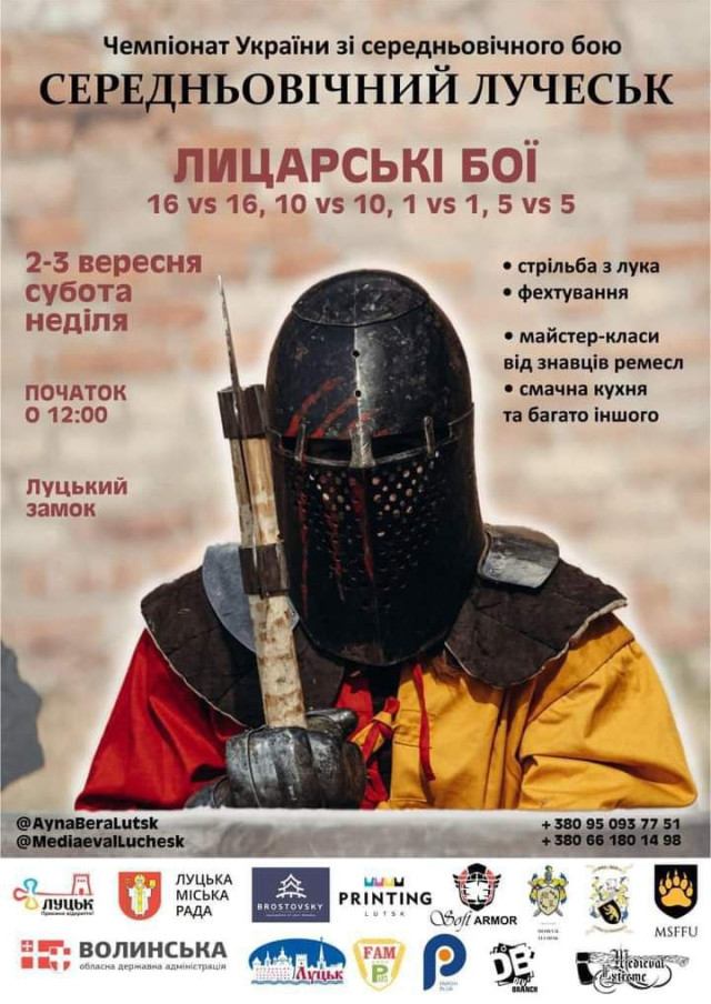 Практикум від Оксани Цимбалюк «Як бути партнером самому собі» в Дія.Бізнес у Луцьку | 31 серпняТурнір Lutsk King of the court-2023 у центральному парку | 1-3 вересняЕкскурсії в музейному просторі «Окольний замок». Вхід із дворику коледжу університету харчових технологій | щодня з 10:00 до 19:00Концерт KOLA в заміському комплексі Gosti | 2 вересня«Дитяча субота» в книгарні «Є» | 2 вересняКонцерт «Пори року» від Національного ансамблю солістів «Київська камерата» в Палаці культури міста | 2 вересняЕкскурсія до зоопарку від «СпівДії заради дітей» | 2 вересняЧемпіонат України зі середньовічного бою «Середньовічний Лучеськ» у замку Любарта | 2-3 вересняЛекція від Назара Лісковецького «Як продавати онлайн-курс на 1 000 000 грн щомісяця: ключові фактори успішного автоматизованого маркетингу» у Дія.Бізнес у Луцьку | 2 вересня Інтелектуальна гра з фінансової грамотності для дітей «Лісові комерсанти» в бібліотеці для юнацтва | 3 вересня