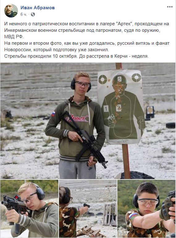 Як пише видання «Кriminal.tv», залишається таємницею, хто і як організував для Рослякова тренування зі стрільби в таборі «Артек» за тиждень до бійні в політехнічному коледжі. Тренування відбувалися на Інкерманському військовому стрільбищі під можливим патронатом МВС Росії?