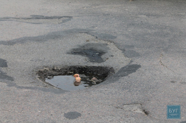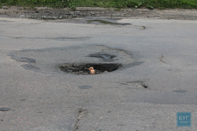Інспектор Ляля розпочала «купальний сезон» в калюжах на дорогах Володимира-Волинського. Стан доріг Волині продовжують інспектувати журналісти інтернет-видання «БУГ».