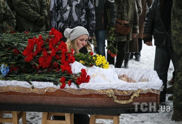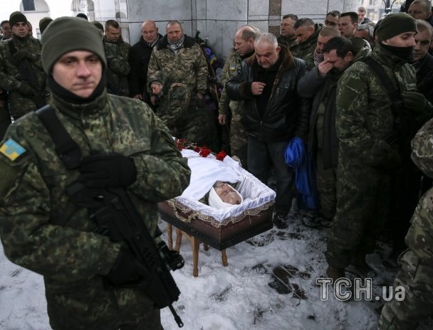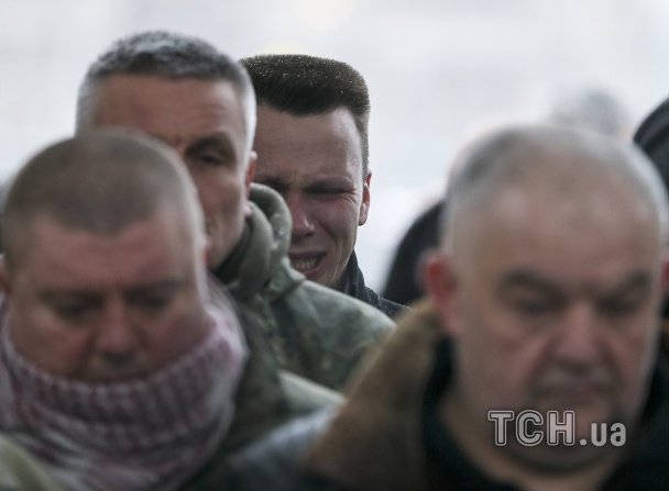 Під час прощання із бійцем чоловіки не могли стримати сліз, а труну із тілом силовика зустрічали навколішки. Болісні фото із церемонії зробили фотокореспонденти агенції Reuters.