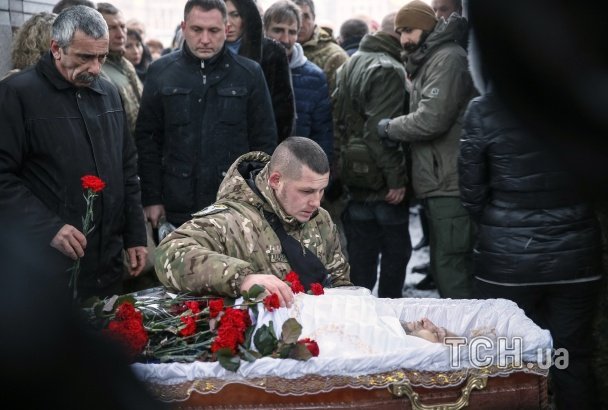 У Києві навколішки прощалися із загиблим бійцем "Миротворця". Про це інформує ТСН.
