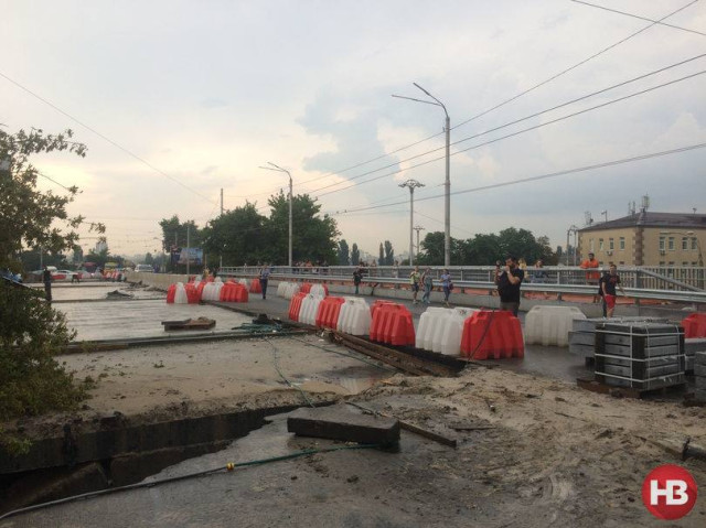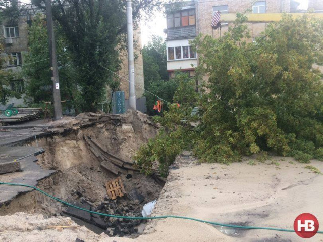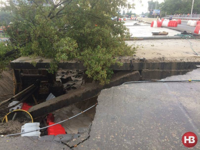 Як повідомили в Головному управлінні Державної служби з надзвичайних ситуацій міста Києва, аномальна злива стала причиною часткового руйнування мосту на перетині вулиць Олени Теліги та Кирилівської (колишня Фрунзе). Йдеться про Кирилівський шляхопровід, частину однієї з головних транспортних артерій Києва – Малої окружної дороги.