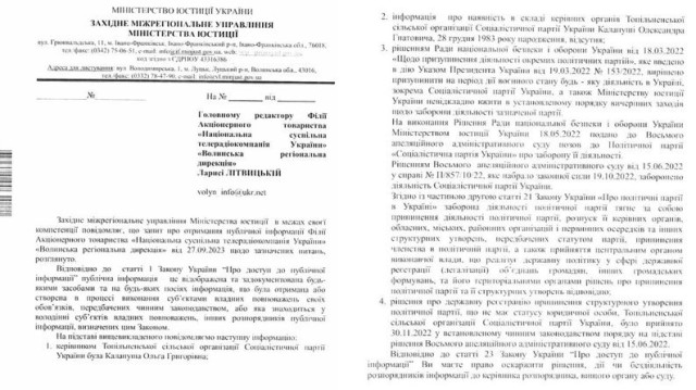 Суспільне звернулося за роз’ясненням у Західне міжрегіональне управління Мін’юсту. У листі-відповіді повідомили, що керівник місцевого осередку Калапуша О.Г. – це не Олександр Гнатович, а Ольга Григорівна. Сам осередок припинив існування торік у листопаді, згідно з рішенням суду.Журналістам вдалося знайти колишню очільницю місцевого політичного осередку соціалістів. Ольга Калапуша живе у сусідньому селі, говорить: партійний осередок очолювала з 1994-го року, його розпустили два роки тому.