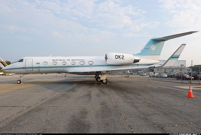 Довгий час в якості VIP-транспорту для керівників держави Збройні сили Ботсвани експлуатують літак Gulfstream IV з бортовим номером OK2 (на фото). Проте нещодавно цей літак був проданий власнику в США. Тепер для цієї мети використовується Bombardier Global Express з б/н OK1.