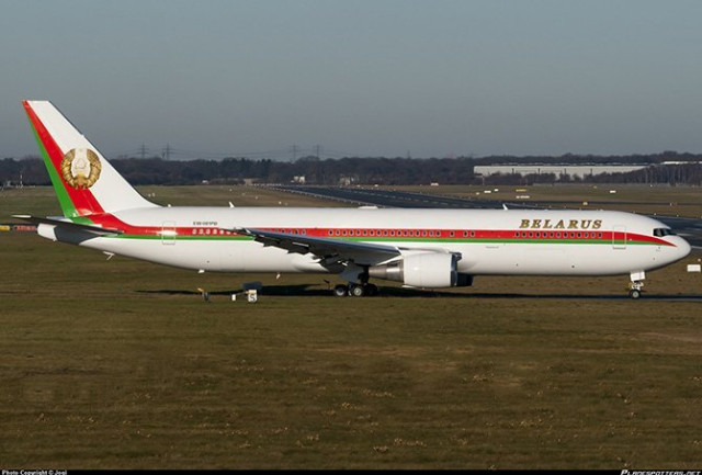 Авіакомпанія Belavia експлуатує Boeing 767-300ER (фото 1), Boeing 737 Business Jet і Ту-154M (фото 2) для використання президентом і прем’єр-міністром Білорусі. Замість традиційної блакитної розмальовки літак пофарбований у червоні й зелені тони національного прапора Білорусі. На борту на двері нанесено напис «Білорусь» на кирилиці і латиниці. На хвості зображено державний герб Білорусі.