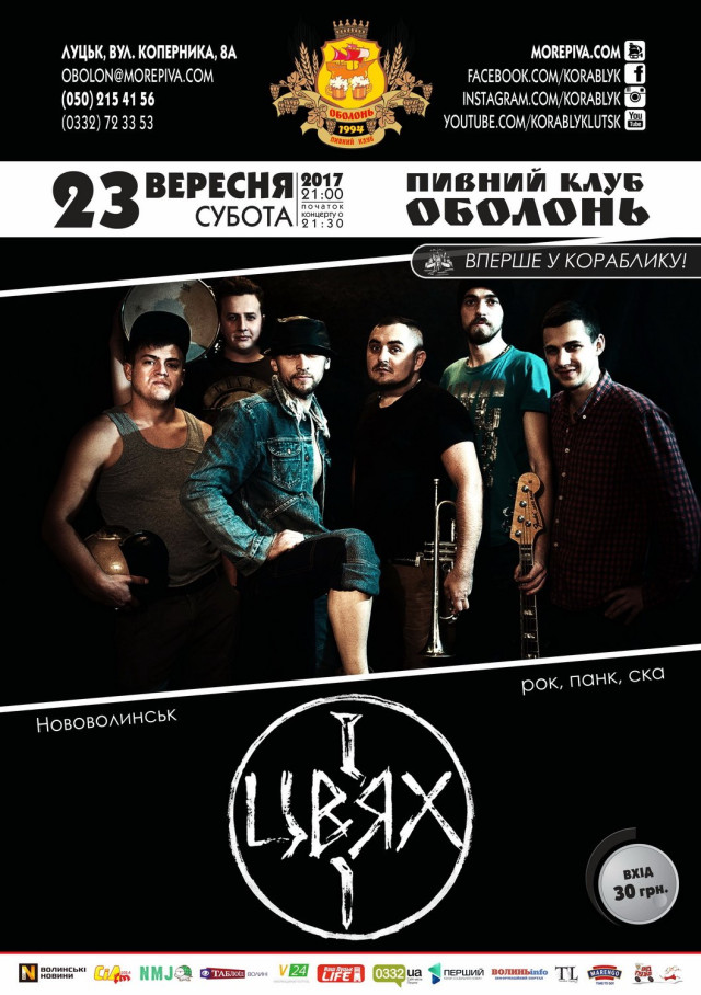Надзвичайно позитивна та драйвова банда під назвою «Цвях» вперше виступить у луцькому пивному клубі «Оболонь» («Кораблик»). Концерт відбудеться у суботу, 16 вересня о 21.30.