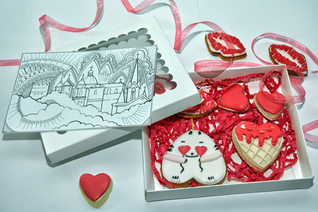 "До Дня усіх закоханих пропонуємо вам чудові набори – солодке імбирне печиво від Томи Бащук "Підсолодимо життя" (6 штук в наборі) + оригінальна розмальовка (1-2 штуки), яка створена Катериною Костюк та Дмитром Березюком.