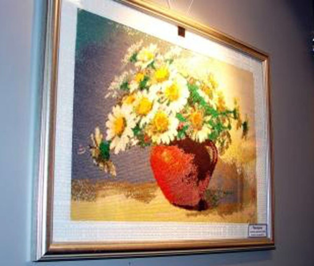 Молода майстриня Ірина Стравінська подарувала можливість волинянам ознайомитися з її творчістю – унікальним «хрестиком». В чому його унікальність? На відміну від традиційного він неймовірно маленький – 110 «хрестиків» на одному квадратному сантиметрі. Більшість робіт містять понад 100 тисяч «хрестиків», мозаїчно поєднують більш як сто кольорів та відтінків ниток. Це – копітка, наполеглива праця, яка потребує, старанності, самовіддачі, тривалого часу; в результаті – народжується шедевр. Майстриня розповідала, як одного разу її виставку відвідали дві жіночки старшого віку, які самі тривалий час захоплюються вишивкою. Вони довго не могли повірити, що це хрестики – нарешті, уважно роздивившись роботи з обох боків, визнали, що ті дійсно вишиті хрестиком.