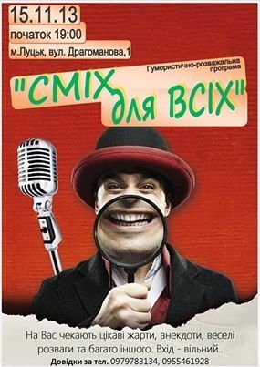Організатори зазначають, що сміх продовжує життя, а щира усмішка робить красивим кожне обличчя, тож лучанам пропонують зібратися разом для проведення обряду магічного перетворення кожного присутнього на щасливого довгожителя. У рамках гумористично-розважальної програми «СМІХ для ВСІХ» звучатимуть цікаві жарти та анекдоти, також будуть веселі завдання.