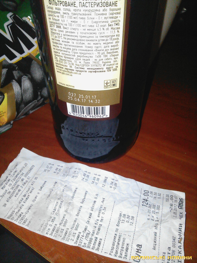 В одному з луцьких супермаркетів лучанці продали пиво, термін придатності якого закінчився ще тиждень тому.