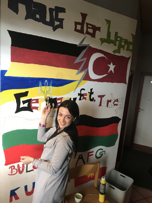 Далі був переїзд у містечко Горн у краї Ліппе, де у школі 2 ступеня директор та школярі-екскурсоводи розповіли про організацію навчального процесу та шкільний побут. По тому учасників візиту гостинно зустріли у молодіжному центрі “Стара пошта” у Горні. Вихованці молодіжного театру, що діє при центрі, провели інтерактивні ігри та показали цікаву виставу. На згадку про себе луцька делегація зобразила на “стіні гостей” український Прапор і Тризуб.