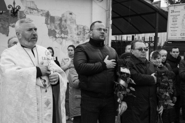 До спільної молитви за упокій душі спочилого воїна разом із родиною, духовенством, бойовими побратимами, небайдужими громадянами долучився міський голова Ігор Поліщук.