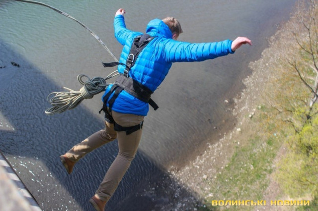 «Ми організовували стрибки з мосту в Устечку, що пролягає над Дністром і з'єднує Тернопільську і Івано-Франківську область. Охочих здійснити стрибок було багато. Робили це на особливій системі альпіністичної «навіски», яка давала можливість на зворотньому «маятнику» вилітати майже на повну висоту мосту. Також самі учасники команди відпрацьовували стрибки за ноги з макимальною «глибиною» падіння, пролітаючи всього лиш за два метри від землі. Утім, звичайним екстремалам, тобто без досвіду, таких розваг не дозволяли», - каже голова організації ГО «Земля стрибків» лучанин Ігор Павлюк.