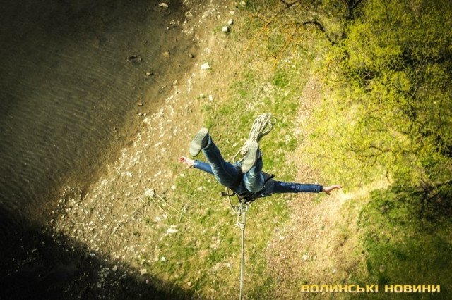 Луцькі екстремали стрибали із мотузкою над річкою Дністер. Екстремальні розваги провели у селі Устечко, що знаходиться між двома областями - Тернопільською та Івано-Франківською.