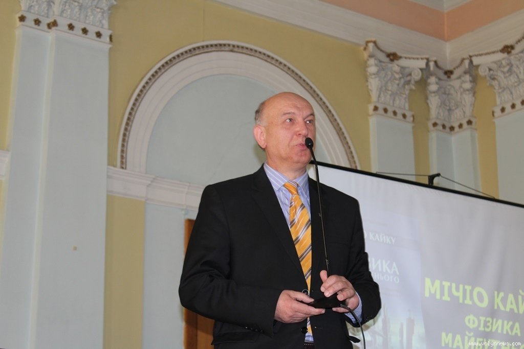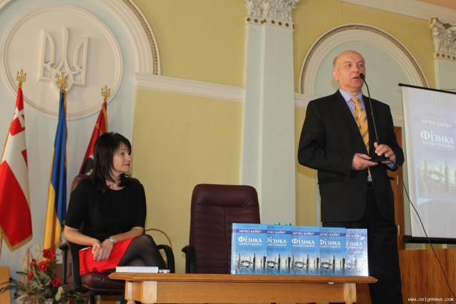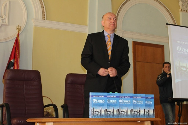 Він привіз до Луцька переклад праці відомого американця українською мовою. За словами Михайла Комарницького, книжка є визнаною світовою сенсацією, яка здобула Гран-прі Форуму видавців – 2013. «Автор книги - знана людина у світі, він є ведучим численних наукових програм на BBC, Discovery I Science. «Фізика майбутнього» - це науково-популярна розповідь про те, як інновації вплинуть на буденне життя людини. Висновки, які робить Мічіо Кайку є важливі, у них він наголошує на тому, що успішними будуть тільки ті країни, які вкладають фінанси в освіту та у розвиток інновацій», - відзначив директор «Літопису».