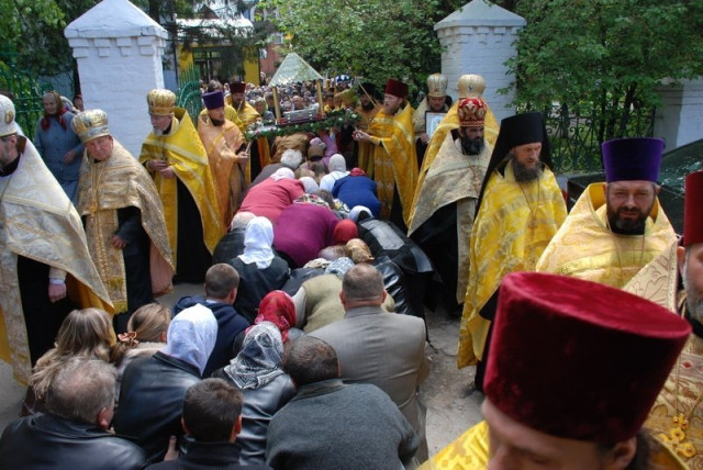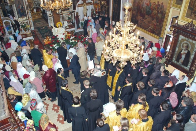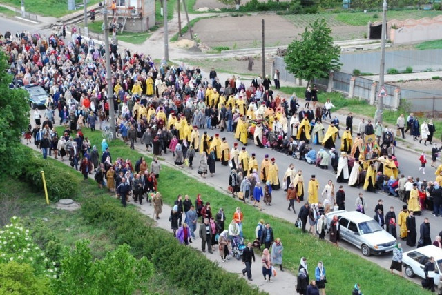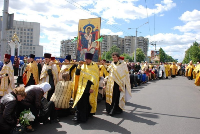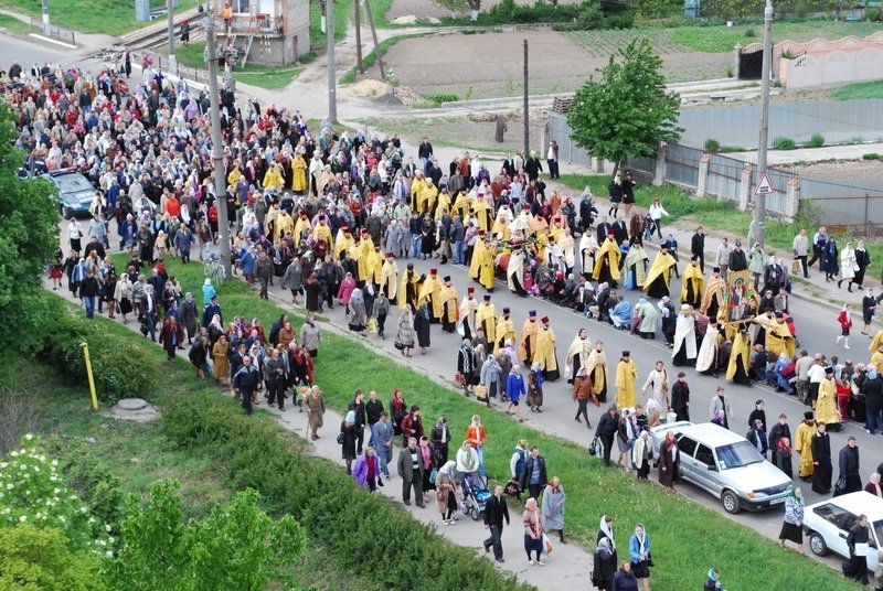 За повідомленням прес-служби Волинської єпархії УПЦ, вранці була звершена Божественна Літургія, очолювана митрополитом Луцьким і Волинським Ніфонтом, і о 13.00 величний хресний хід вирушив від церкви Святої Покрови до вулиці Дубенської, щоб передати чесну десницю святителя Спиридона у Тернопільську єпархію.