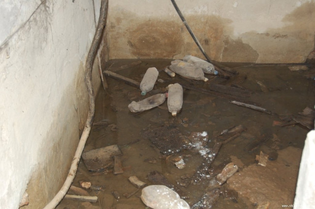 Олексій Тимошенко зазначив, що у підвалі під його квартирою теж стоїть вода: «Я живу на 1-ому поверсі, а під кватирою в мене яма. Я не знаю, як вона там сталась. Але там повно води. Я визвав хлопців, прийшли подивилися. «Та нє», - кажуть, - «труби цілі, ніде не прорвало нічого…». А воно, коли застоюється вода, починає смердіти…і цей сморід йде мені в кімнату. А я питаю: «Откуда вода береться?». Це блоки фундаментів пропускають воду (дощ, сніг талий)… Вода біля будинку не прибирається, і сніг. То воно все й у підвал і йде. І там дві ями – повно води. Ну зараз хоч холодно. А коли от жарко, то вся ця пліснява просто у квартиру йде» - описав ситуацію пенсіонер.