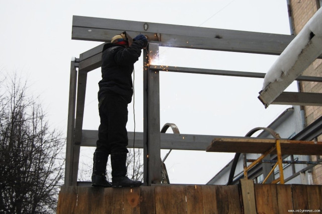 «Однак наше управління містобудування і архітектури проводило перевірки виконання будівельних робіт. І ми побачили порушення. Тобто підприємець самочинно змістив на півметра в сторону будинку оцю конструкцію, що є порушенням пожежних правил. Тому вчора будівництво було припинено. Але ми бачимо, що будівництво продовжується, тому ми ще не визначилися, як ми далі будемо діяти і цій ситуації», – говорить Матвіїв.
