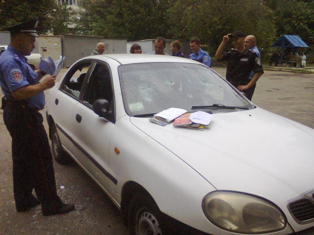 В автівки розбите заднє та бокове скло, а також тріщини на передньому склі.