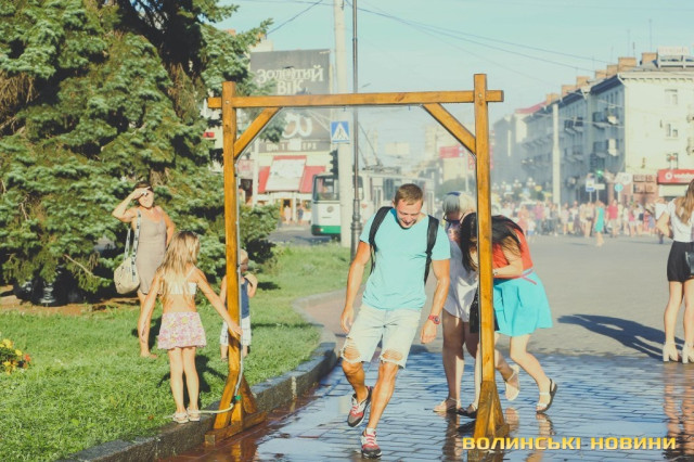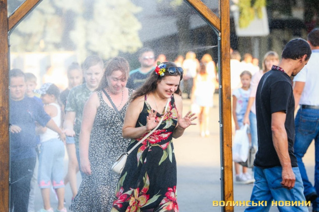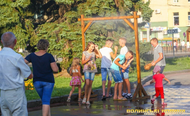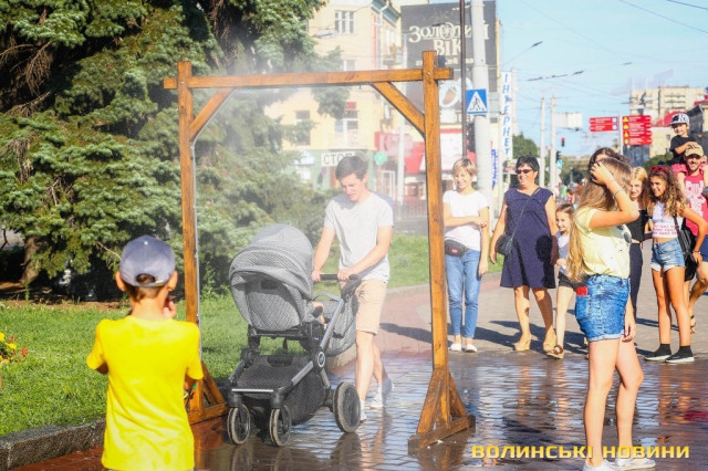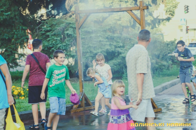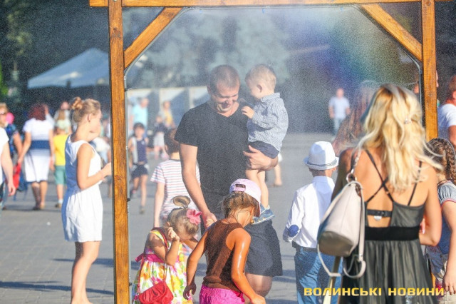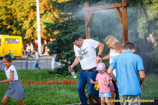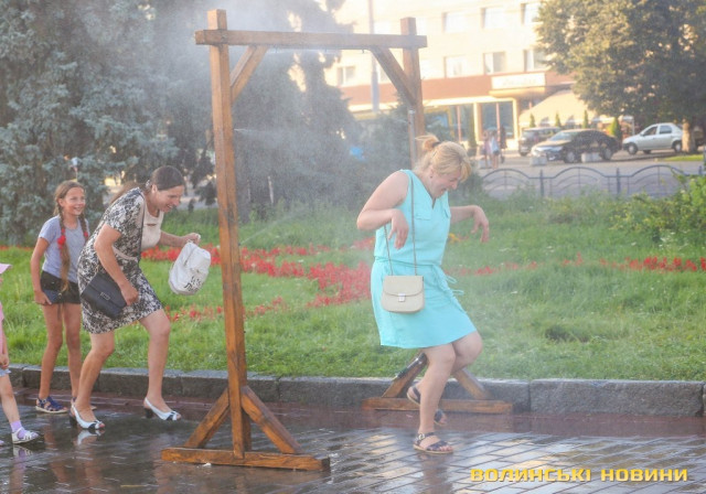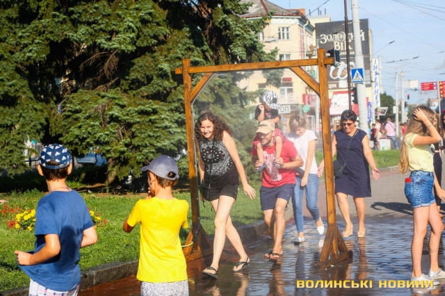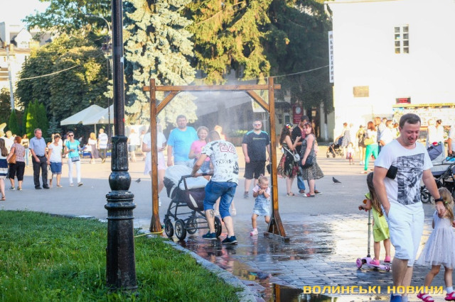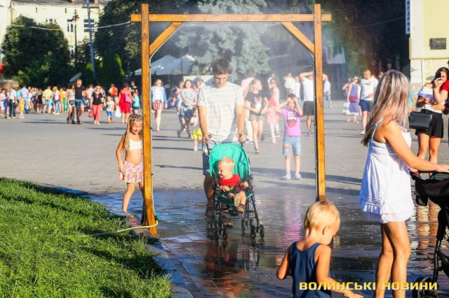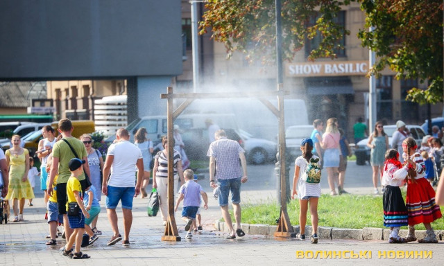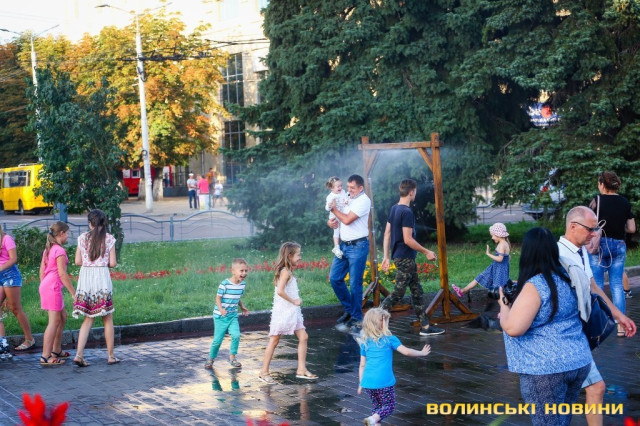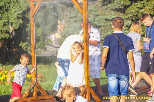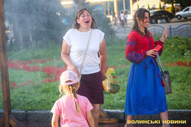 Сонячної неділі у центрі міста одним з найпопулярніших серед містян та гостей Луцька об’єктів стала нещодавно встановлена водна завіса. Тут можна було побачити як колоритних козаків, які гостили на Волинській землі та несли із собою українську пісню, так і цілі родини лучан з найменшими дітьми.