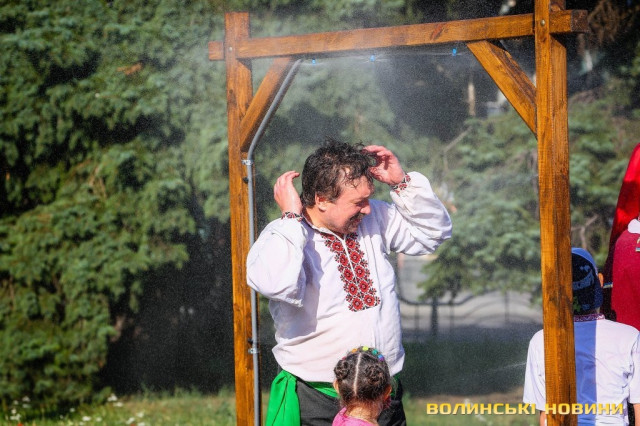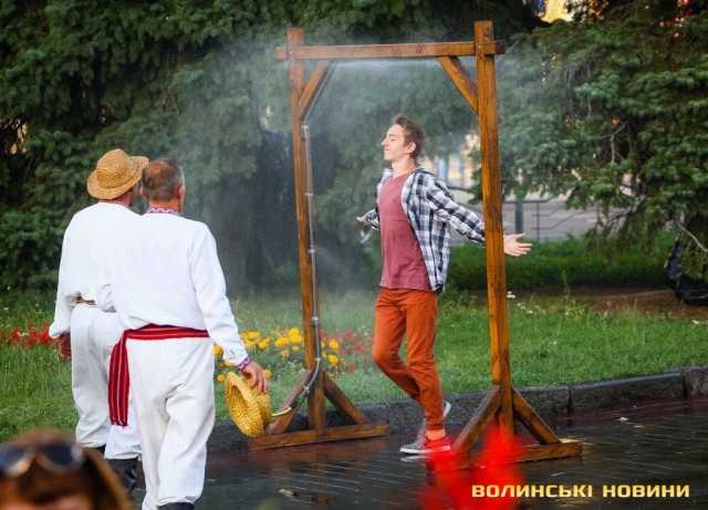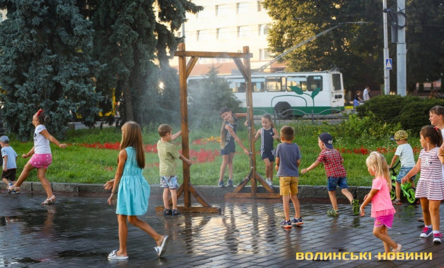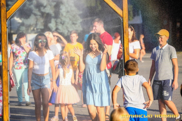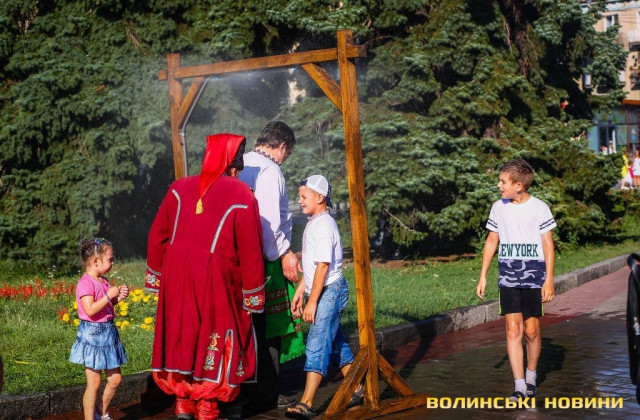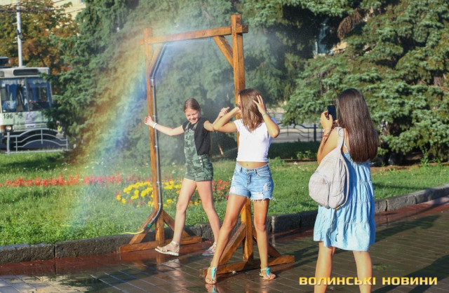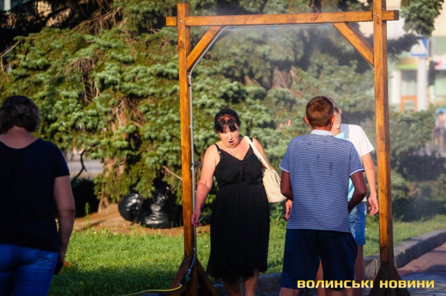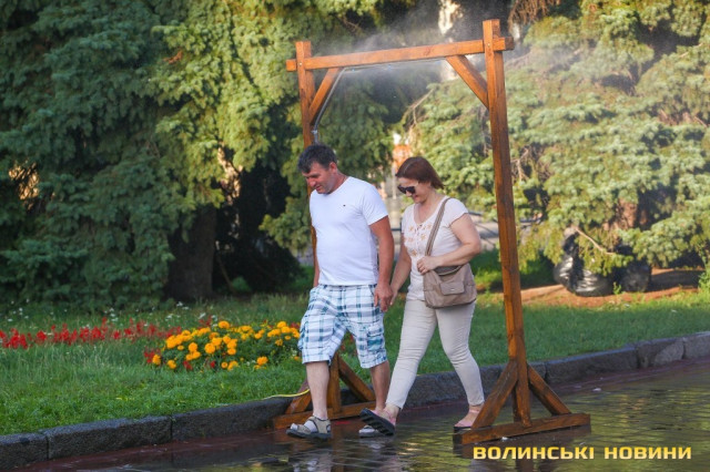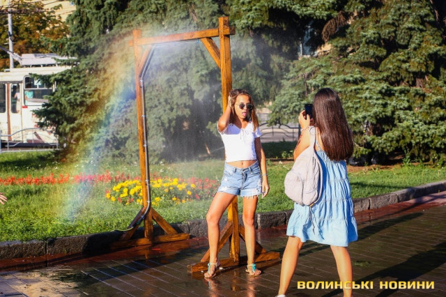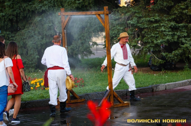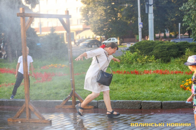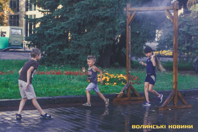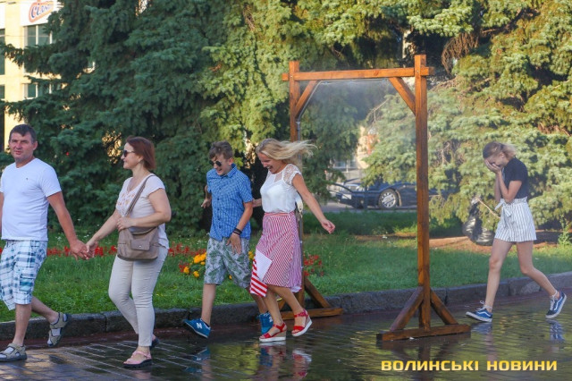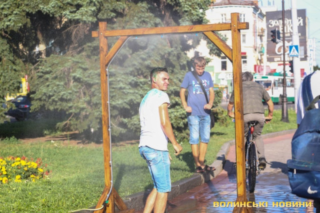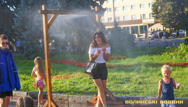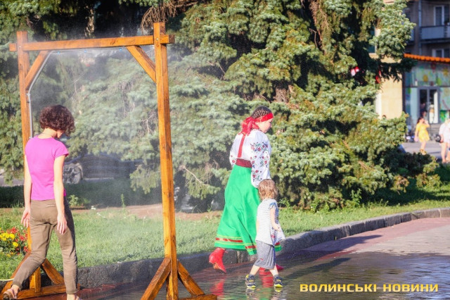 Сонячної неділі у центрі міста одним з найпопулярніших серед містян та гостей Луцька об’єктів стала нещодавно встановлена водна завіса. Тут можна було побачити як колоритних козаків, які гостили на Волинській землі та несли із собою українську пісню, так і цілі родини лучан з найменшими дітьми.