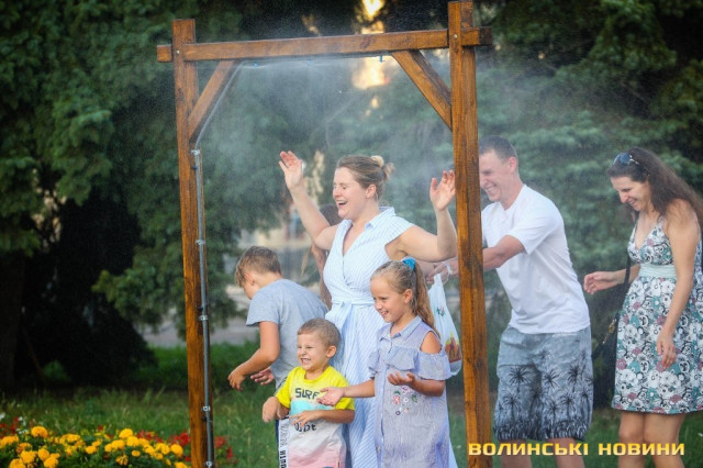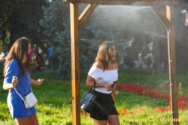 Під прохолодними струменями води змивали з себе різнобарвні фарби ті, хто брав участь у веселому холі-фесті, приуроченому до Дня молоді, рятувалися від перегрівання учасники міжнародного фестивалю українського фольклору «Берегиня», вбрані в етнічні костюми різних регіонів України, а дехто проїздив під вуличним душем на велосипеді.